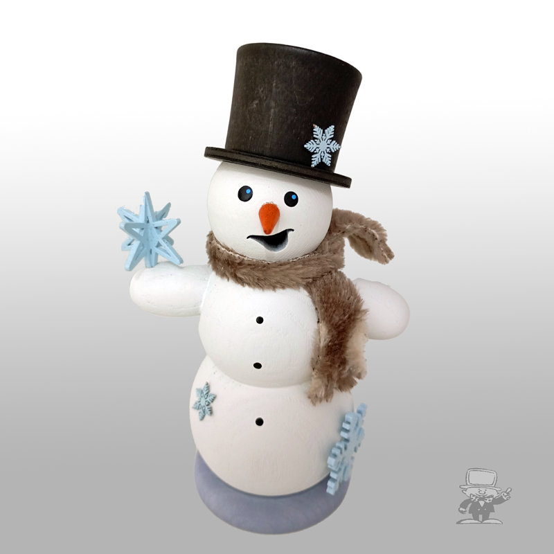 Der Räucherschneemann kommt mit seinen Schneesternen und im Zylinder elegant daher.