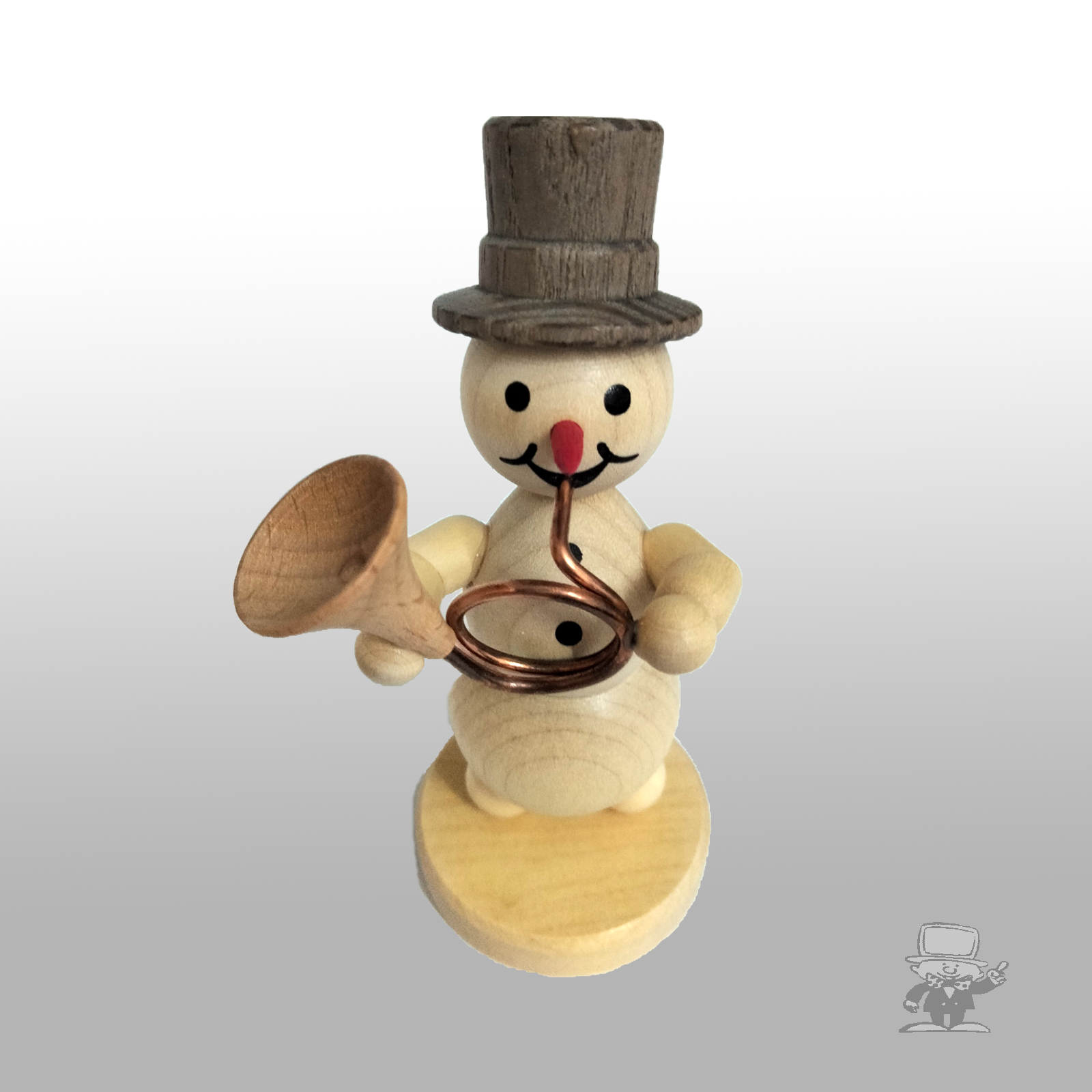 Schneemann Musikant mit Horn.Material: HolzGröße: ca. 12cm hoch